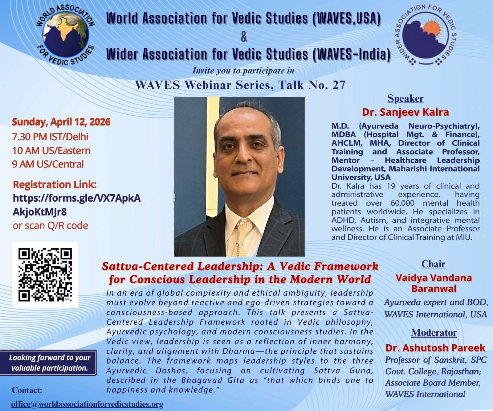World Association for Vedic Studies (WAVES International) & Wider Association for Vedic Studies (WAVES-India) cordially invite you to join the WAVES Webinar Series 2025 Talk No. 27